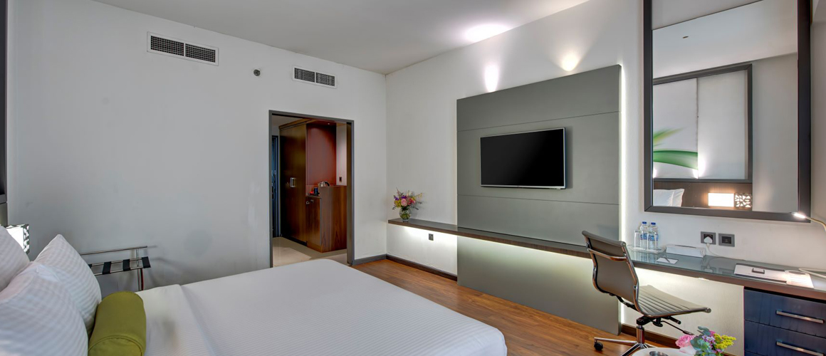 Take in this awe-inspiring city from Howard Johnson Plaza by Wyndham Dubai Deira, walking distance from Al Rigga Metro Station (red line), Union Metro Station (red and green line) and Al Ghurair shopping mall. Located in the business district of Deira, we’re close to Deira City Center shopping mall (reachable via our free shuttle) and just six kilometers from Dubai International Airport (DXB). Easily access the Dubai Aquarium & Underwater Zoo in The Dubai Mall as well as Ski Dubai in the expansive Mall of the Emirates. Our contemporary hotel welcomes you with a fitness center, rooftop pool, and free basement parking.